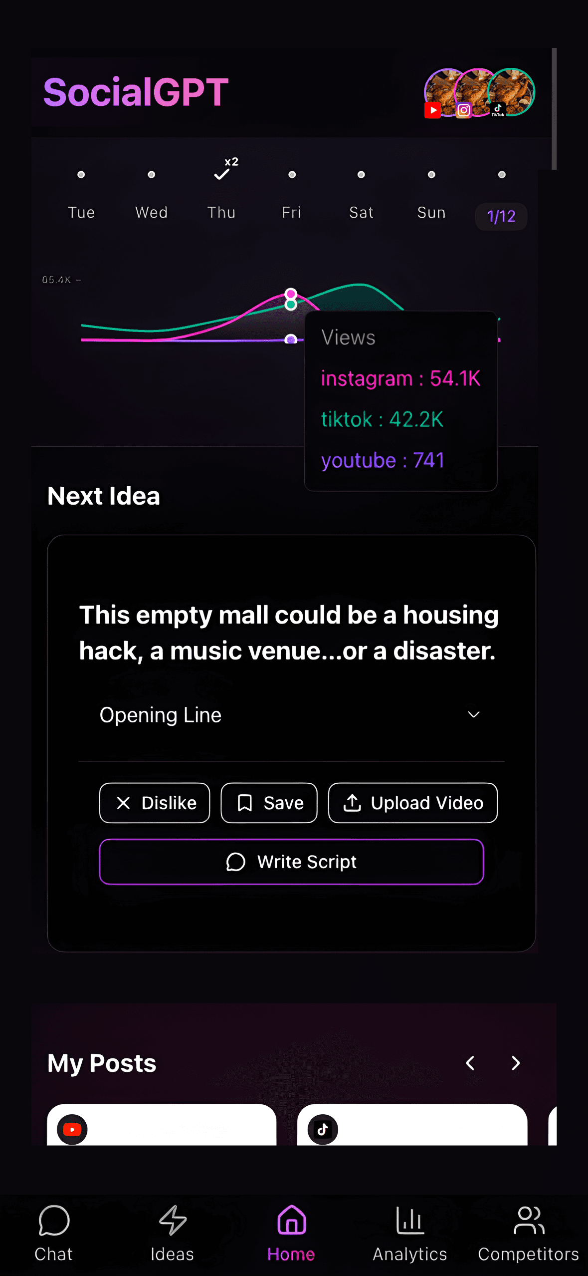 SocialGPT scans your account and learns what works (and what doesn't) and adjusts new ideas based on your own data.